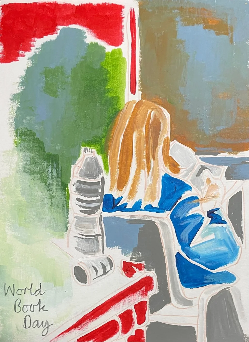 My illustration today is my quick, painted sketch entitled World Book Day, which I did indeed create one WBD (very naughty as I should have been reading!)